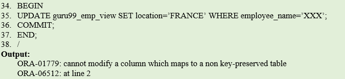 BEGIN UPDATE gtupapers_emp_view SET location='FRANCE' WHERE employee_name=:'XXX’; COMMIT; END; /