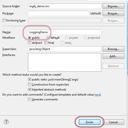 log.debug("--information--");Step 1) In Eclipse create a new project with name log4j_demo