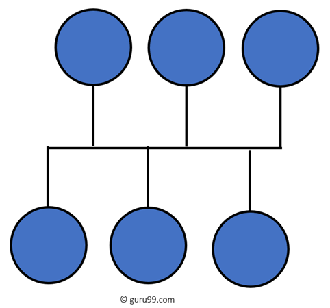 Tree topologies have a root node, and all other nodes are connected which form a hierarchy. So it is also known as hierarchical topology. This topology integrates various star topologies together in a single bus, so it is known as a Star Bus topology. Tree topology is a very common network which is similar to a bus and star topology.