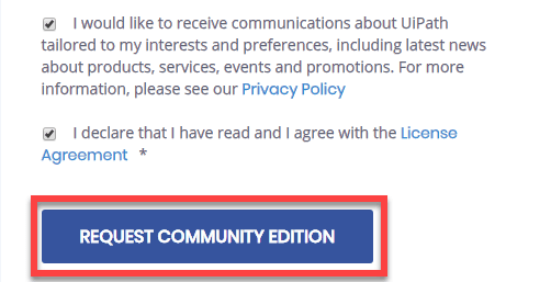 Step 1) Enter this URL in your browser: https://www.uipath.com/community. Click on get community edition button.