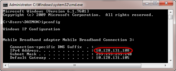 For this example, we are using Mobile Broadband connection details. Take note of the IP address. Note: for this example to be more effective, and you must use a LAN network.