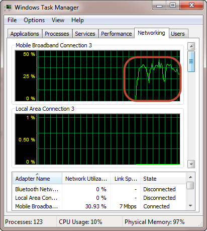 If you want to see the effects of the attack on the target computer, you can open the task manager and view the network activities.