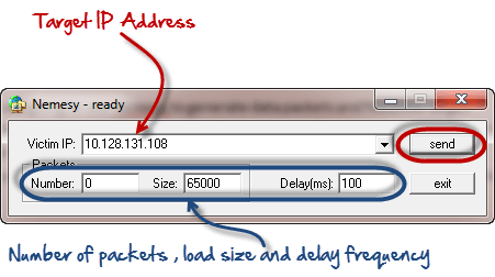 In this practical scenario, we are going to use Nemesy to generate data packets and flood the target computer, router or server.