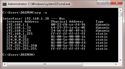 arp –s 192.168.1.38 60-36-DD-A6-C5-43