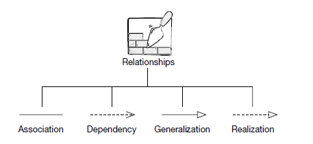 In a dependency relationship, as the name suggests, two or more elements are dependent on each other. In this kind of a relationship, if we make a change to a particular element, then it is likely possible that all the other elements will also get affected by the change.