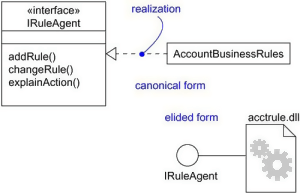 In the above diagram, the interface Iruleagent is denoted using an elided form which is being realized by acctrule.dll.