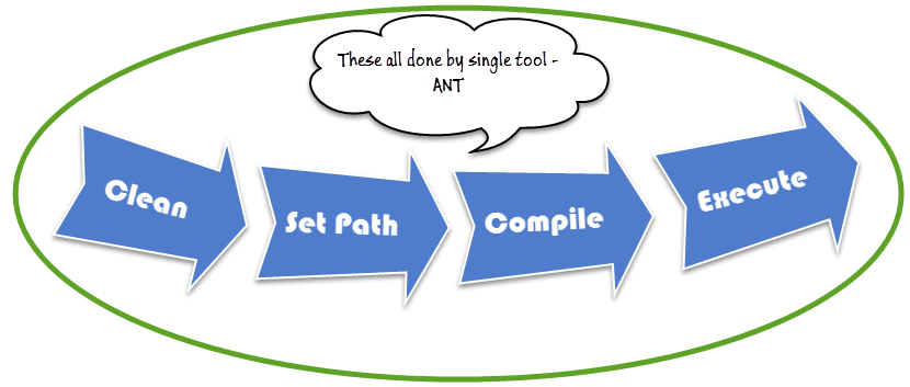 Here comes the importance of a build tool like Ant. It stores, executes and automates all process in a sequential order mentioned in Ant's configuration file (usually build.xml).