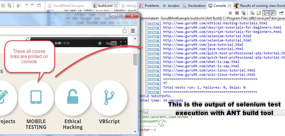 Similarly, for our testing projects using selenium, we can easily mention selenium dependency in build.xml and we don't need to add a class path of it manually in our application.