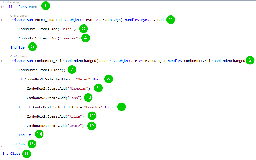 ElseIf ComboBox1.SelectedItem = "Females" Then