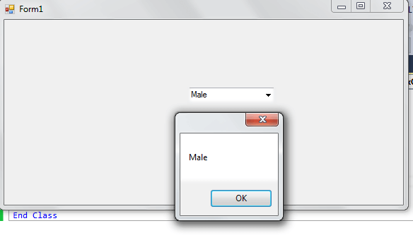 You can get the selected item from your combobox. This can be done using the text property. Let us demonstrate this using our above combobox with two items that is, Male and Female. Follow the steps given below: