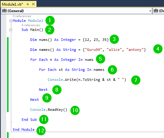 The For Each loop can be nested. This will occurs when we put one For Each loop inside another For Each loop. Let us demonstrate this using an example.