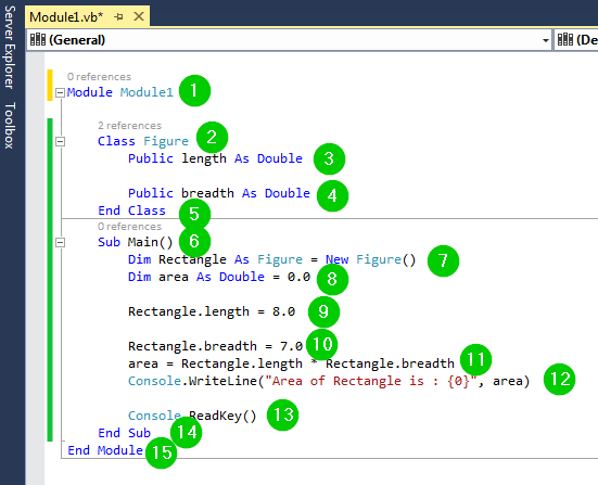 To define a class, we use the Class keyword, which should be followed by the name of the class, the class body, and the End Class statement. This is described in the following syntax: