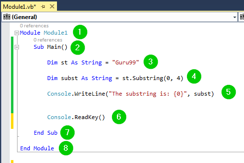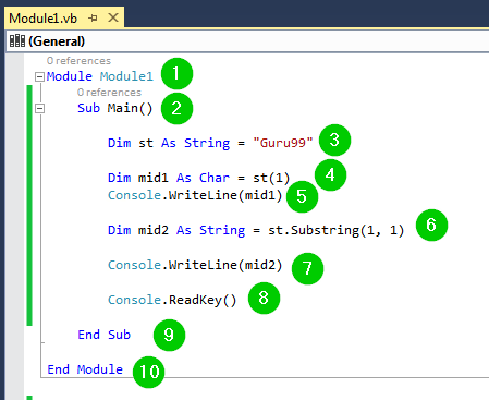 The substring function is used to obtain a part of a specified string. This method is defined in the String class of Microsoft VB.NET. You have to specify the start index from which the String will be extracted. The String will be extracted from that index up to the length that you specify.