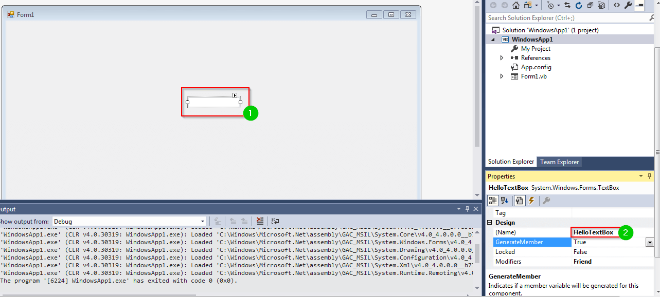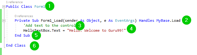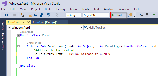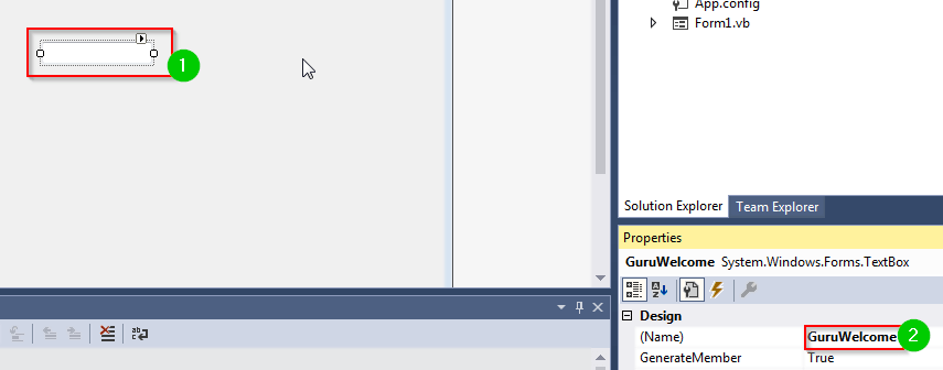 Drag and drop a TextBox Control to your form. Give the control the name GuruWelcome.