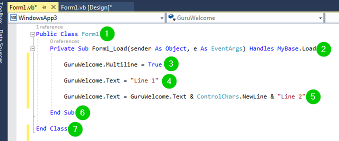 GuruWelcome.Text = GuruWelcome.Text & ControlChars.NewLine & "Line 2"