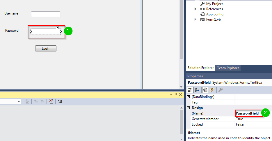 Do the same for the TextBox Control next to Password label, giving it the name PasswordField.