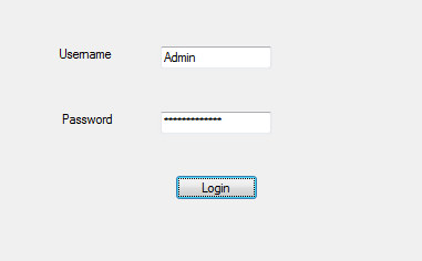 The username is shown, but the password has been hidden. Here is the code for the above:
