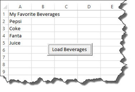 Sheet1.Cells(1, 1).Value = "My Favorite Beverages"