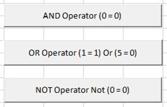 The main Excel VBA logical operators AND, OR, NOT are listed in the table below: