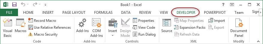 As we see in previous tutorial, make sure your ribbon will have "Developer" icon as shown here.