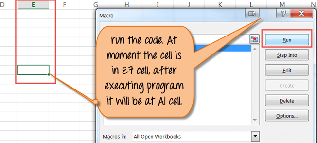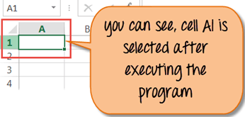 Step 6) You will see Cell "A1" is selected after execution of the program.