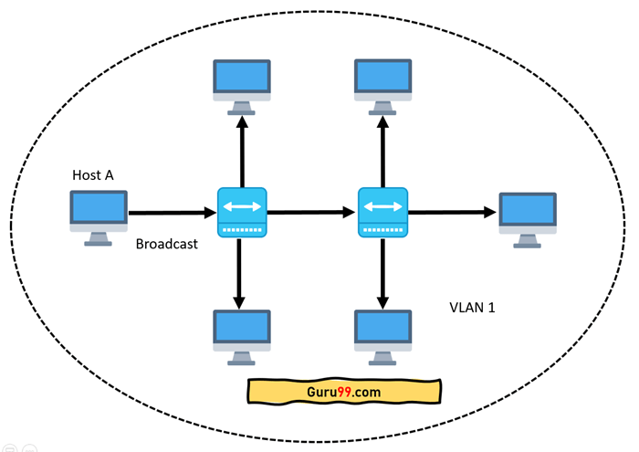 The below topology depicts a network having all hosts inside the same virtual LAN: