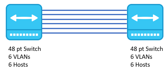 In the below example, there are 6 hosts on 6 switches having different VLANs. You need 6 ports to connect switches together. It means, if you have 24 various VLANs, you will have only 24 hosts on 45 port switches.