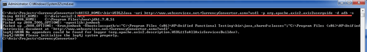 %AXIS2_HOME%\bin\WSDL2Java -uri http://www.webservicex.net/CurrencyConvertor.asmx?wsdl -p org.apache.axis2.currencyconvertor -d adb –s