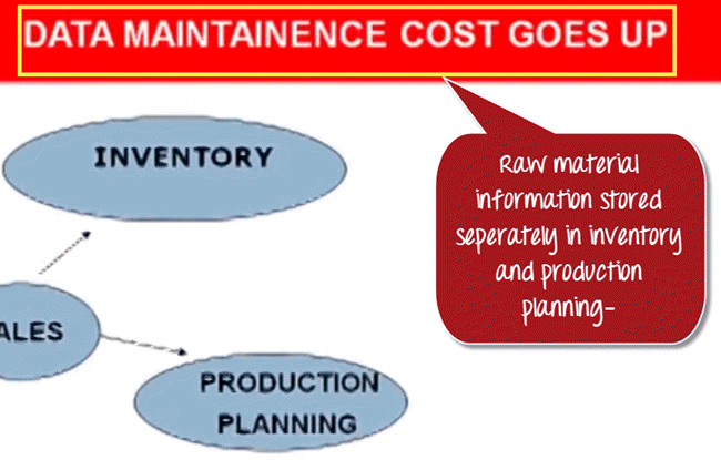 In a decentralized system, raw material information is stored separately by Production Planning as well as the Inventory Department. Thus, data maintenance cost (in this case, Raw Material) goes up.