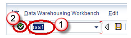 Step 1) Go to transaction code RSA1 to go to the Data Warehouse Workbench. Click the OK button....