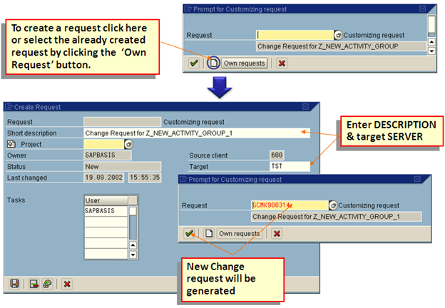 Customizing Request – contains objects that belong to 'client-specific' customizing. As per client settings, these requests are automatically recorded as per when users perform customizing settings and a target system is automatically assigned as per the transport layer (if defined).