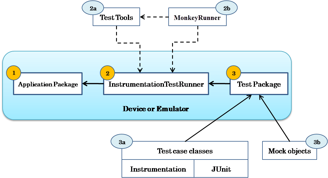 2a) Test tools: A SDK tools for building test. They are integrated in Eclipse IDE or run as command line.