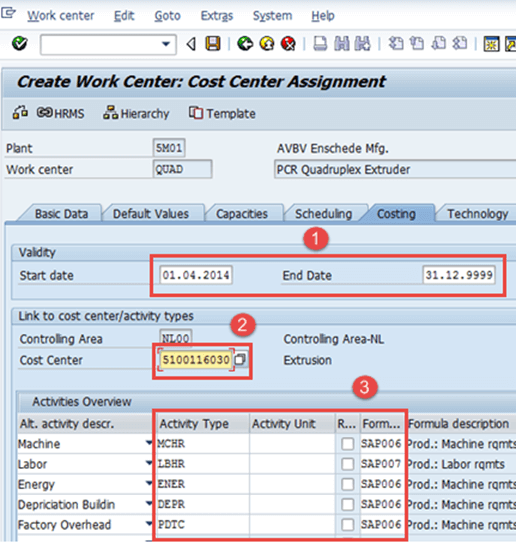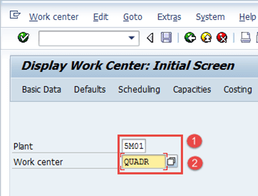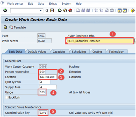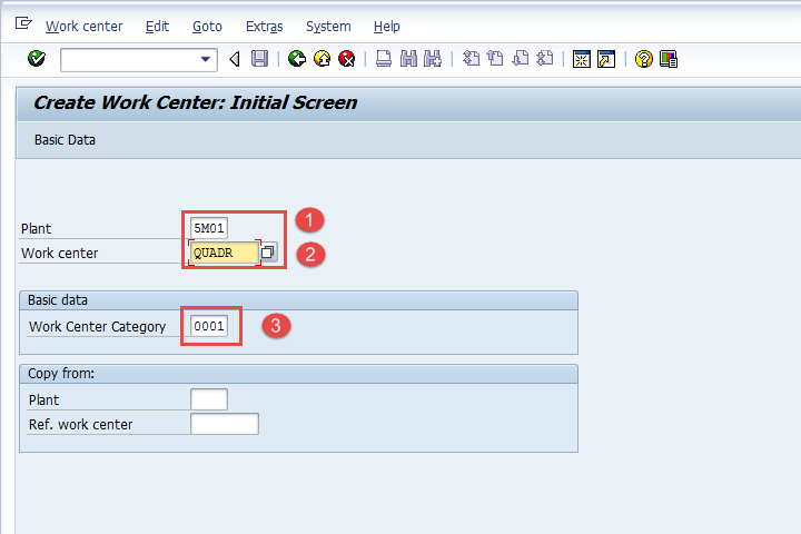 Step 2) In this Screen, Work Center basic data would be entered as given below.