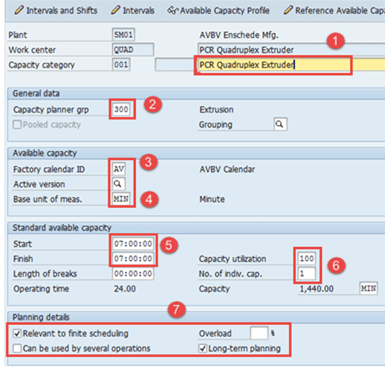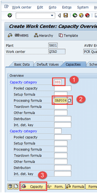 Step 4) In this Screen under capacities Tab, capacity data will be entered.