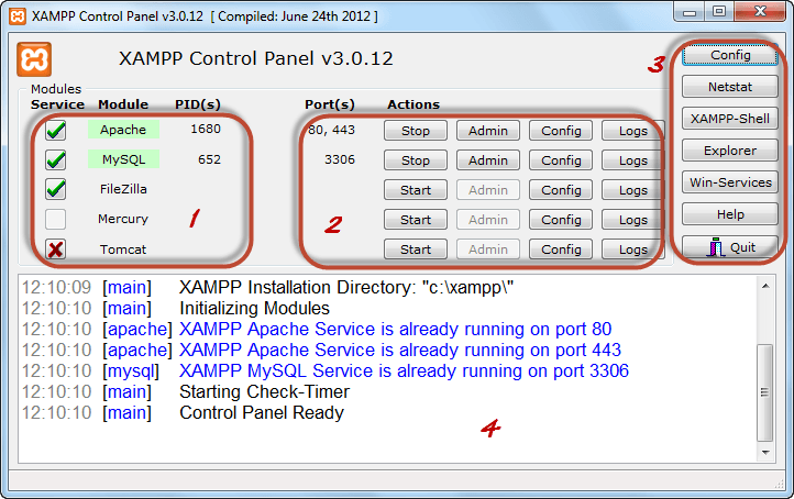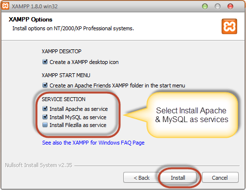 Note a service is a long-running program in windows that does not require user intervention. Services can be set to run automatically whenever the windows operating system is started. For you to use Apache and MySQL, they are supposed to be running in the background. Installing them as services runs both Apache and MySQL automatically in the background whenever you power up your computer. If you have not installed Apache and MySQL as services, then you have to manually start them every time that you want to use them. You will have to do this from the XAMPP control panel.PHP and
