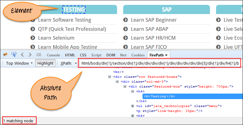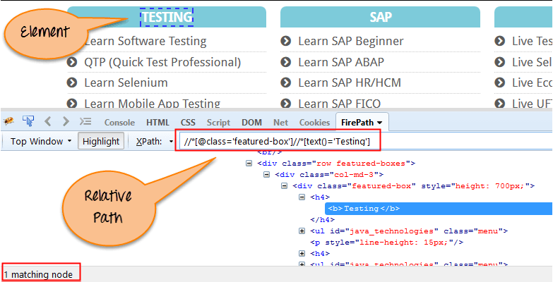 Below is the example of a relative XPath expression of the same element shown in the below screen. This is the common format used to find element by XPath.