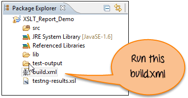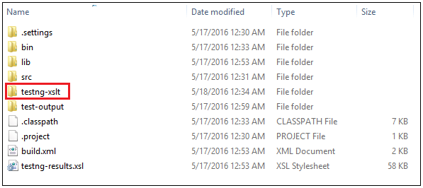 Once build is successful and moved to project home directory. You will find the testng-xslt folder.