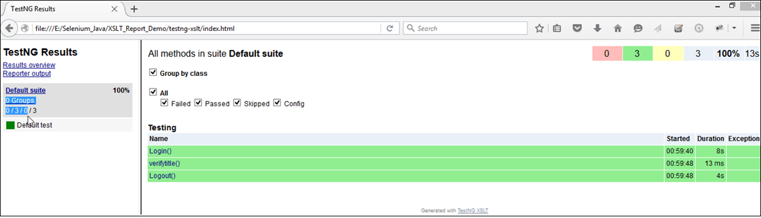 After execution of script and build.xml. Verify the XSLT report as shown in the below screen: