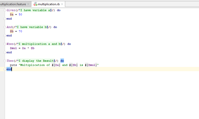 puts "Multiplication of #{@a} and #{@b} is #{@mul}"