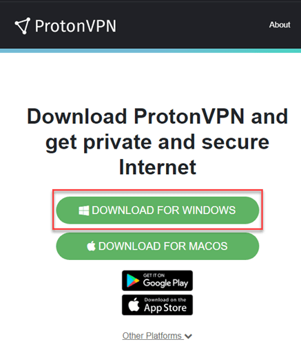 Step 1: Go to https://protonvpn.com/download and download ProtonVPN for Windows.